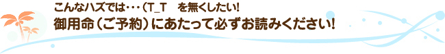 少しばかり長文となります。おこがましいお願いになりますが、ご利用いただくにあたり「大切」な内容ですので、ご予約前にご一読いただけますと幸いです。