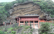 船形山の山腹、あろう事か断崖い絶壁に建造された舞台造りの観音堂。下から眺める迫力は圧巻!漁民の安全と大漁を祈願するために、奈良時代(717年)に僧侶の行基が開いたとされています。本尊には磨崖十一面観音立像が祀られており、館山市の指定有形文化財となっています。観音堂からの眺めは良く、館山湾・館山市街を望むことができます。