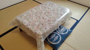 新しいテーブルクロスにしちゃいました^^