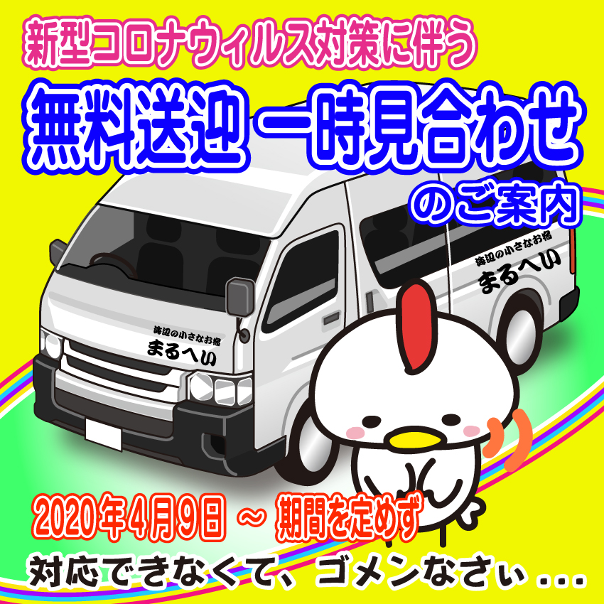 今後、無料送迎サービス再開の目処がたちましたら、改めてブログでご連絡させていただきます。ご迷惑をおかけしますが、何卒ご理解・ご協力賜りますようお願い申し上げます。